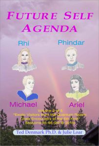 Ted Denmark, Ph.D. & Julie Loar, Future Self Agenda: Rhi & Phindar and Ariel & Michael, Volume 2, *Exotic Visitors from the Quantum Realm*, Amazon 6×9 paperback (color), Kindle ebook & PDF, 2024.